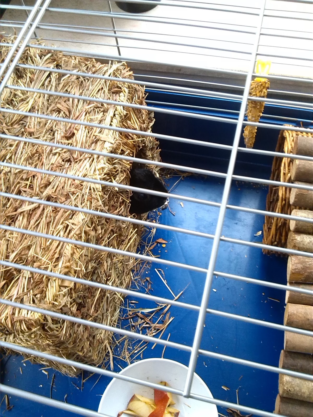 Vandaag mocht Bernadetje dan al eens buiten wat rondhuppelen. In een ren dat we kunnen verplaatsen (niet in hun oude vertrouwde stekkie dus, eerst mag het gras daar wat bijgroeien. Louise kregen we niet te pakken dus bleef die maar binnen.