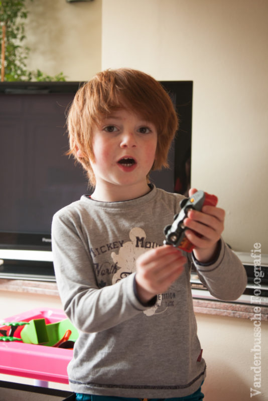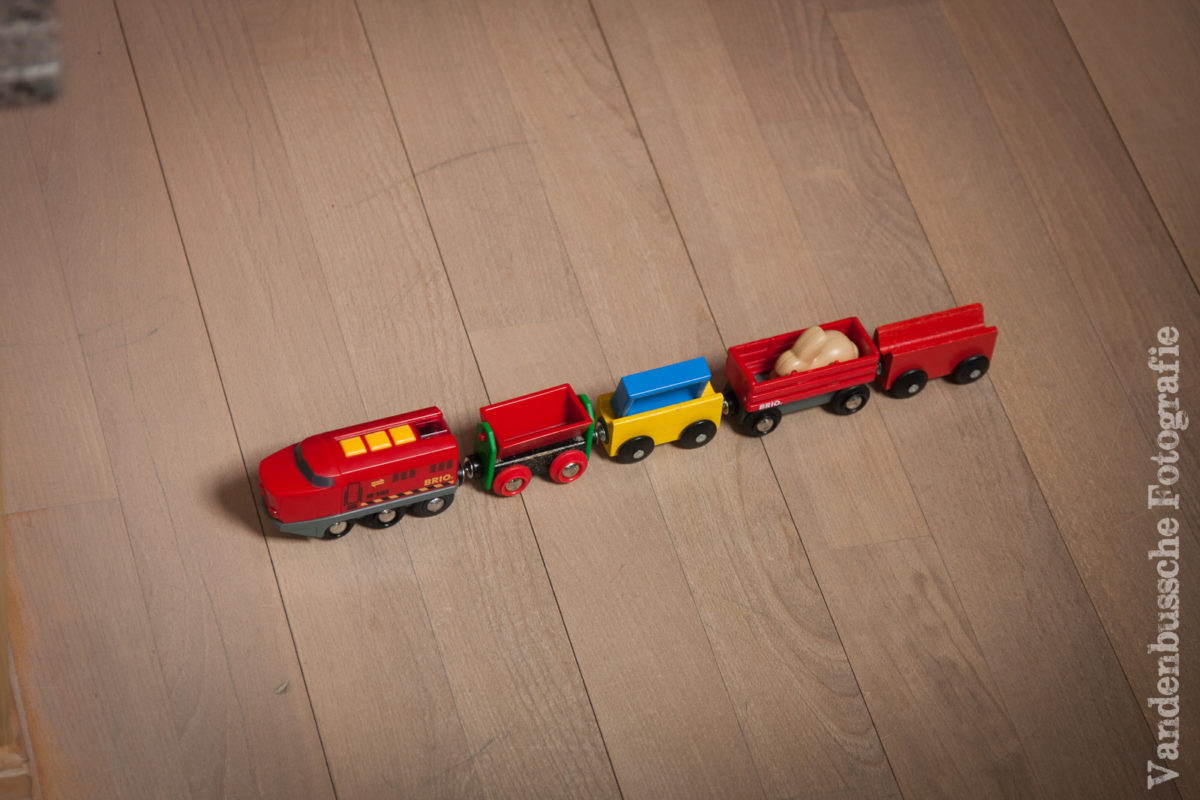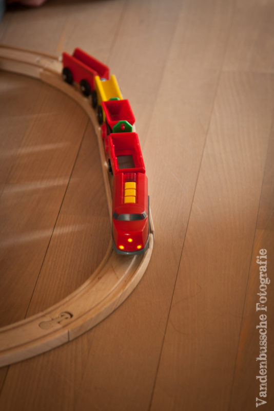 En ja, zoals verwacht een echte hit bij Abel!! Hij werd uitvoerig getest. Op de sporen, zonder sporen, zelfs op de zetelkussens bleef hij vooruit tuffen. Dichtbij de trein kijken hoe hij vooruit gaat, vanop een afstandje alles in het oog houden. Onder geïmproviseerde brugjes rijden. Een volledige week meenemen naar school. Deze trein werd een beste vriend.