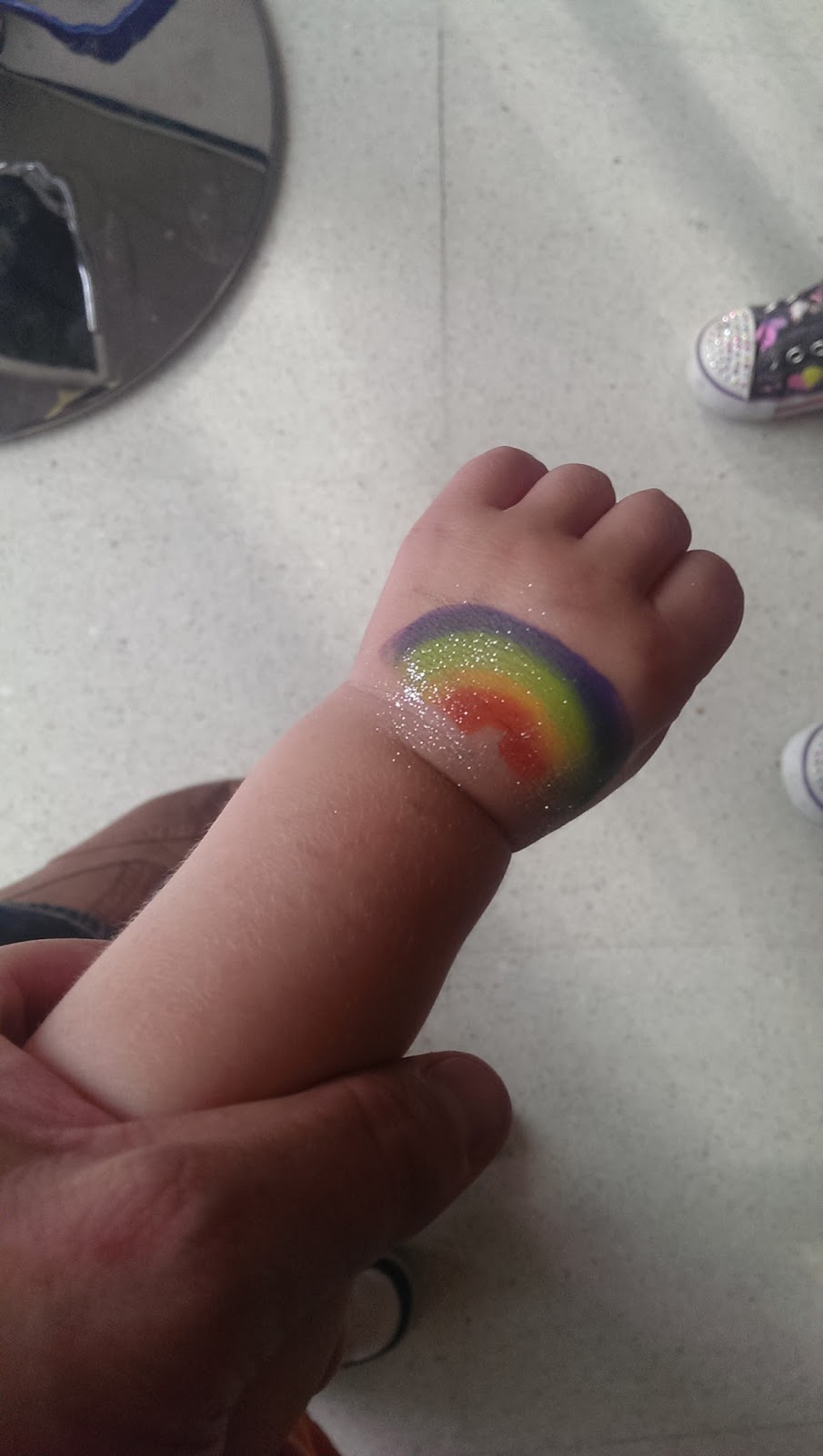 In de namiddag naar een leuke babyborrel waar de kindjes werden omgetoverd tot een draak, een prinses en een regenboog! Ze waren helemaal blij. Het was de eerste keer dat Abel volledig geschminkt wilde worden, en dat natuurlijk (vind ik logisch) uit eigen beweging, al moest mama er wel bij zitten (natuurlijk). Eigenlijk was het voor Emma ook de eerste keer, maar bij haar hadden er nog geen “echte” gelegenheden voorgedaan. Abel was heel erg grappig toen hij probeerde zijn “geschminkte oogjes” te zien in de spiegel … wat hem niet zo goed lukte natuurlijk. Want als oogjes dicht zijn zie je niets meer. Emma was super trots en kon het bijna niet geloven toen ze in de spiegel keek, honderden keren zeggen: “Ik ben een prinsesje!”. En Adam telkens zijn handje komen tonen “Kijk!”.