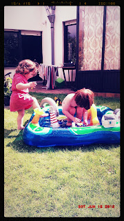 De middag maakte plaatst voor namiddag en ikzelf had nog wat spulletjes nodig, gaan shoppen dus. Met de dochter mee. Ik kocht 2 zwembadjes en een afdekzeil. Lekker handig om dragen en zwaar, met een dochter die weigert handje te geven en gaat weglopen. Veilig en toch nog goed gezind aan de auto geraakt. Hoe doe ik het toch.