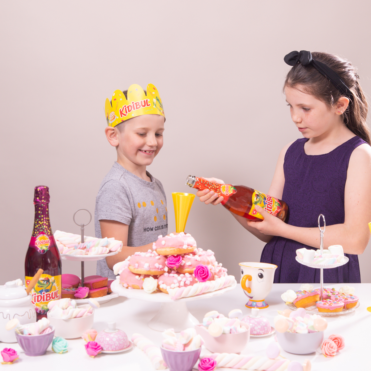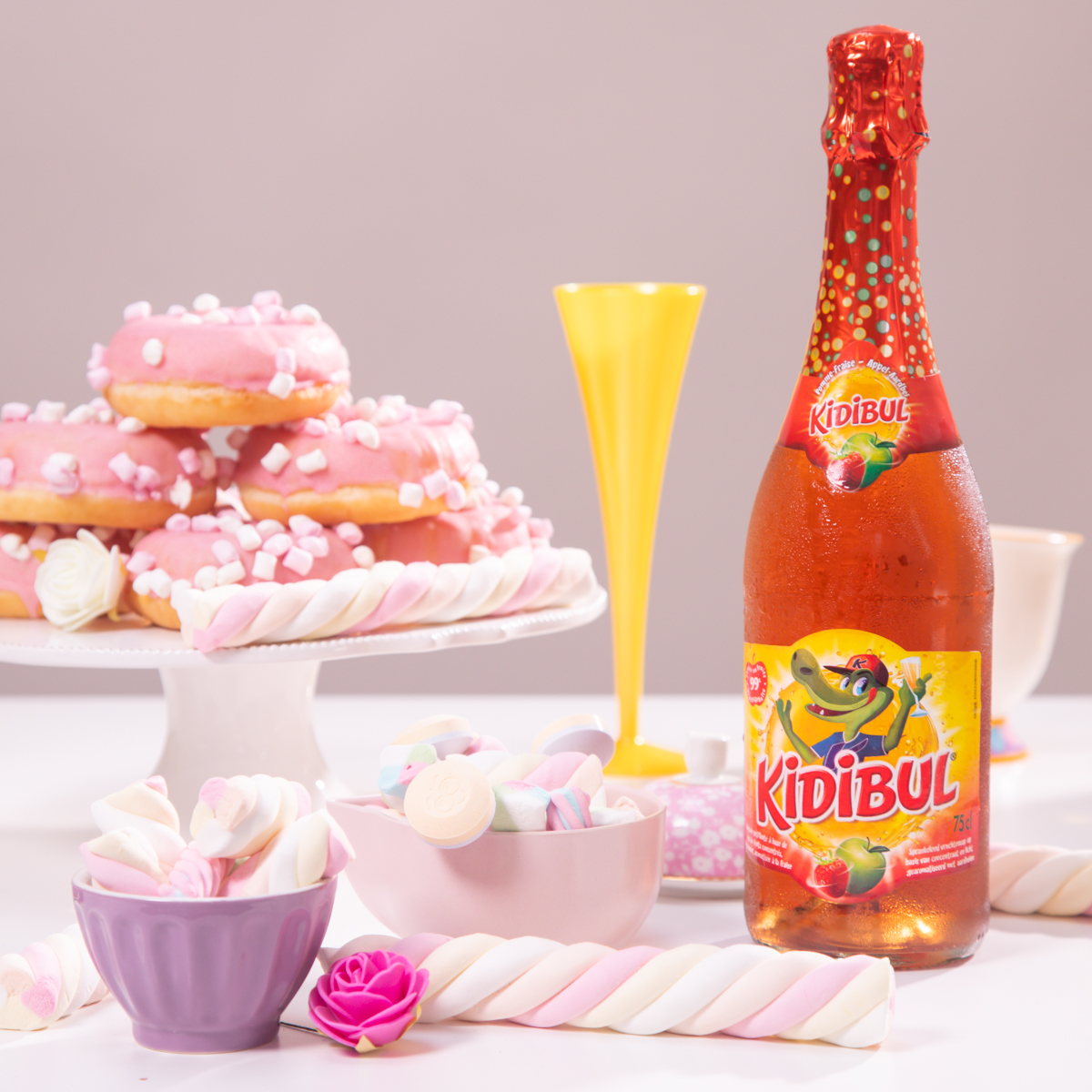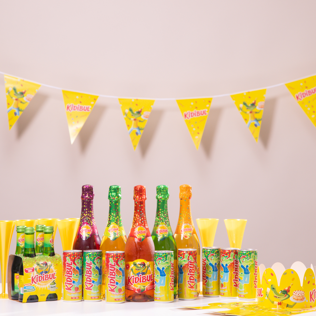 We kozen ervoor om de kinderen Kidibul te laten drinken, die komen in verschillende smaken en hun bijhorende kleuren. Kidibul bestaat uit 100% fruitsap met prik, geen toegevoegde suiker, kleurstof of bewaarmiddelen. Ook leuk om te weten is dat alle appels enkel en alleen uit Europa komen. Onze kinderen vinden het altijd heel feestelijk want het ziet eruit als champagne! Blije gezichtjes gegarandeerd met Kidibul.