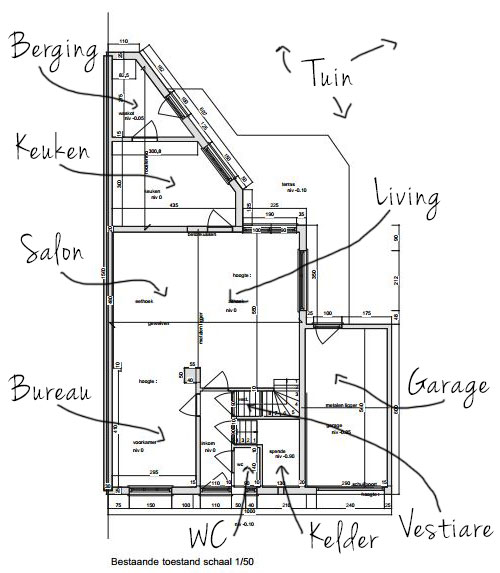 De verbouwing gaat over onze beneden, dit is hoe het nu is: