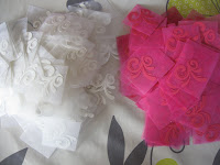 13 september 2011Ondertussen al een hele tijd terug kreeg je op twitter veel te lezen dat ik met #project300 bezig was. Nou, zoals jullie wellicht al weten zijn er vorige week vrienden van ons getrouwd. Ons kado aan hen was voor iedere gast een leuk geschenkzakje, als aandenken voor hun huwelijk. Omdat het nog een beetje onzeker was hoeveel personen er effectief zouden komen heb ik 300 zakjes genaaid. Jawel. Het bruidskoppel zelf heeft ze dan opgevuld met lekkere zoete hart snoepjes. Mmm.
