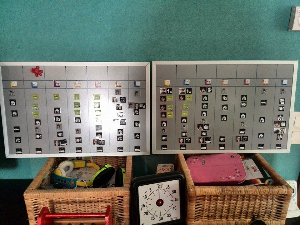 Het is heel erg belangrijk dat je probeert aan de voelen wat je kinderen nodig hebben op die kalender. Je doet het voor hen tenslotte. Test ook alles voldoende lang uit, mensen met ass hebben ook langere aanpassingstijd nodig. Evalueer continu, stuur bij indien nodig. Zo gingen wij van 1 week naar een 2 weken overzicht omdat het anders plots stopt bij de zondag en net daarom startte ik een agenda op. Om te kunnen zien wanneer er school was of juist niet. Al van het begin had ik dus 2 magneetborden gekocht, maar eerst een tijd met 1 bord gewerkt met daarop 8 dagen van maandag tot en met maandag.
